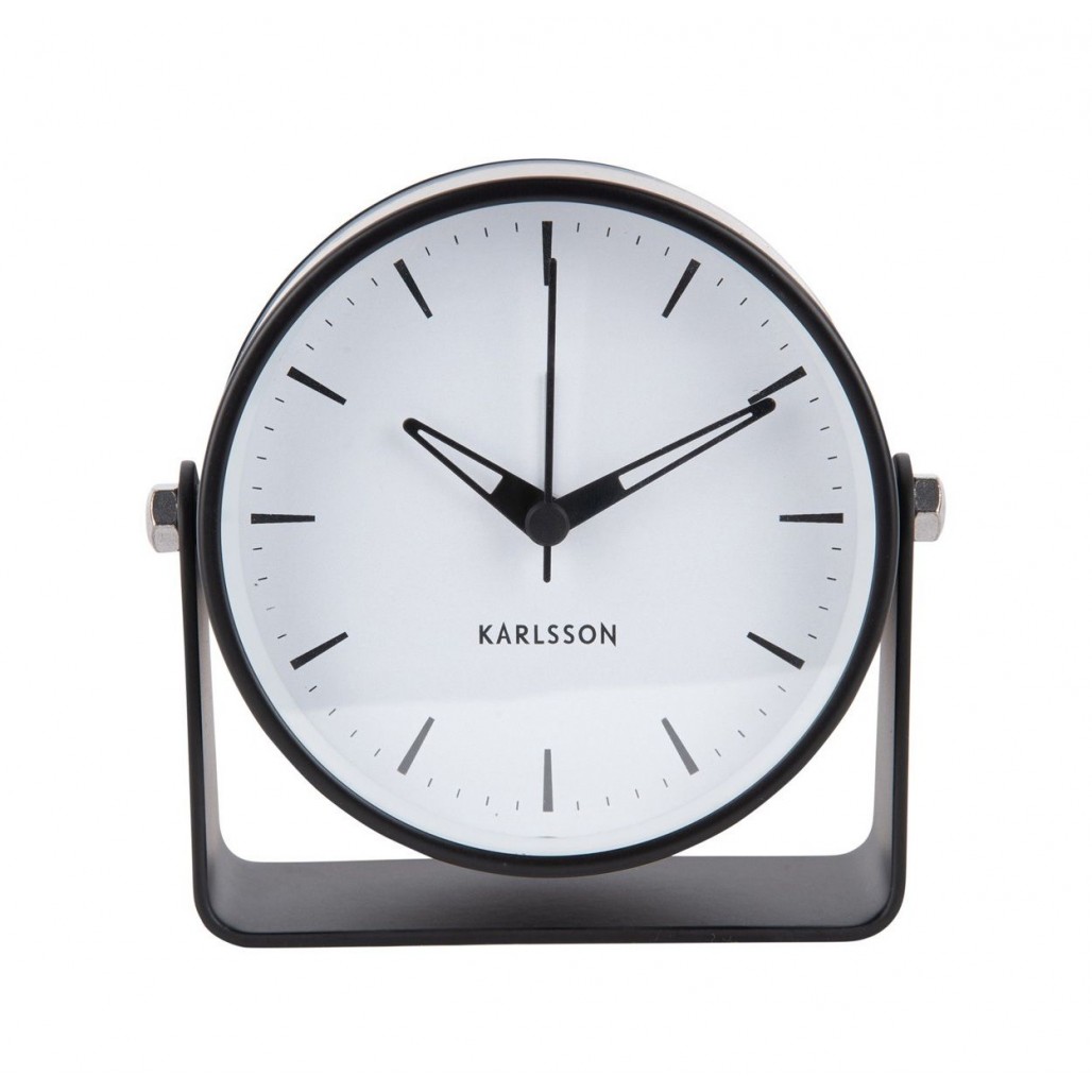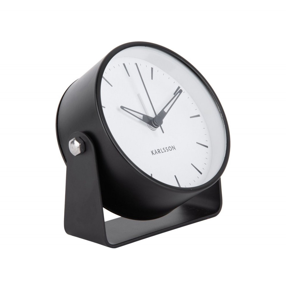 Herkullinen musta herätyskello trendikkäällä muotoilulla. Kello on varustettu pyyhkäisevillä käsillä (äänetön).