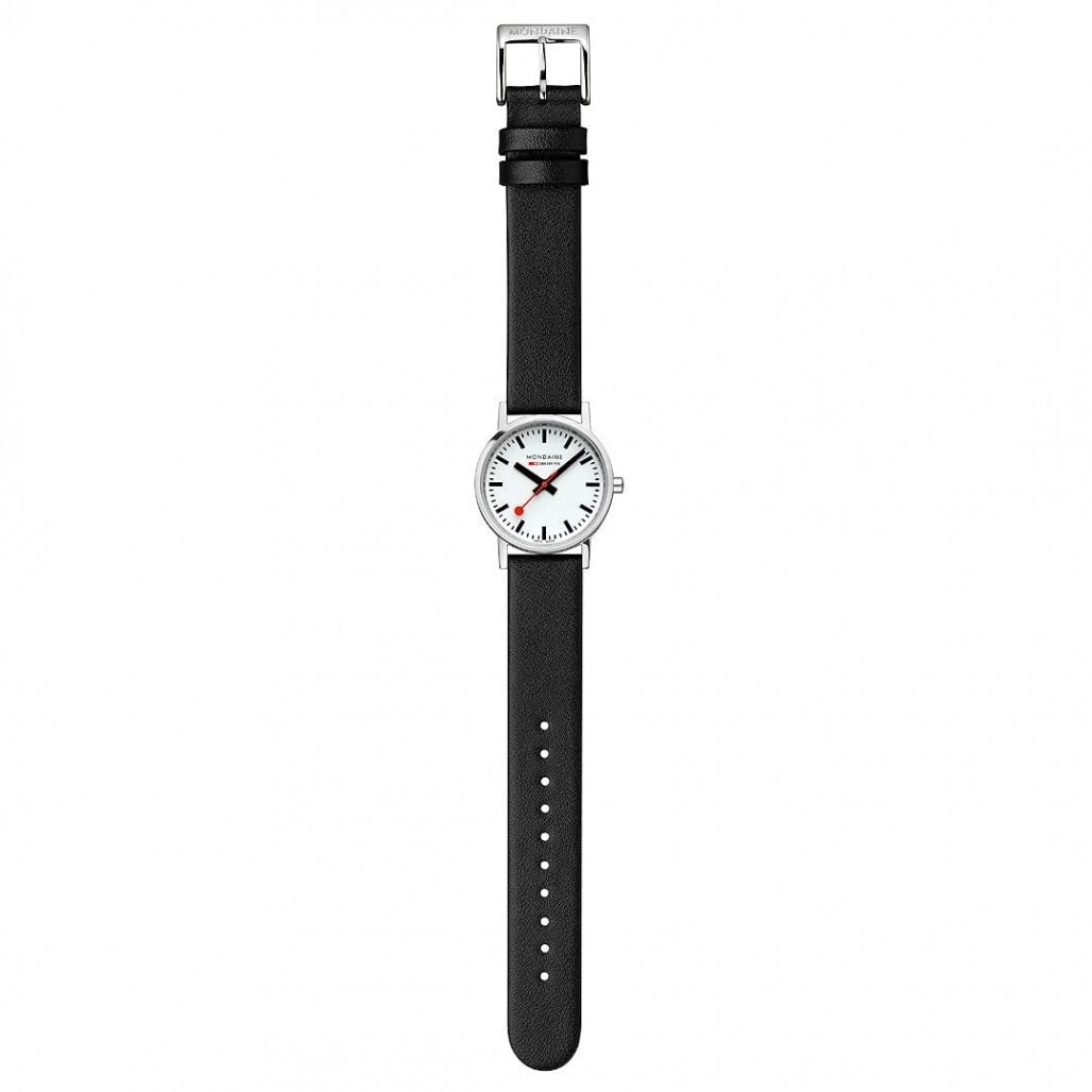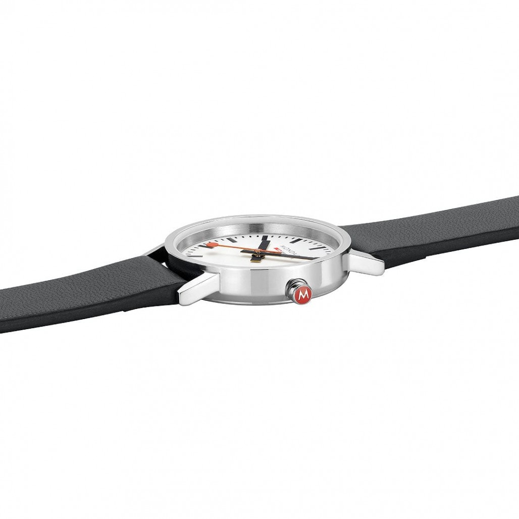 Tämä Classic-mallistoon kuuluva kello edustaa Mondainen tunnusomaista minimalistista designia. Kellossa on 30 mm kiillotettu ruostumattomasta teräksestä valmistettu runko, yksinkertainen mutta kaunis valkoinen kellotaulu ja ikoninen punainen kruunu. Uusi vegaaninen rypälenahkaranneke mustana punaisella sisävuorella on valmistettu 75 % kasvipohjaisesta ekokomposiittimateriaalista ja 25 % kierrätetystä PET-materiaalista.
