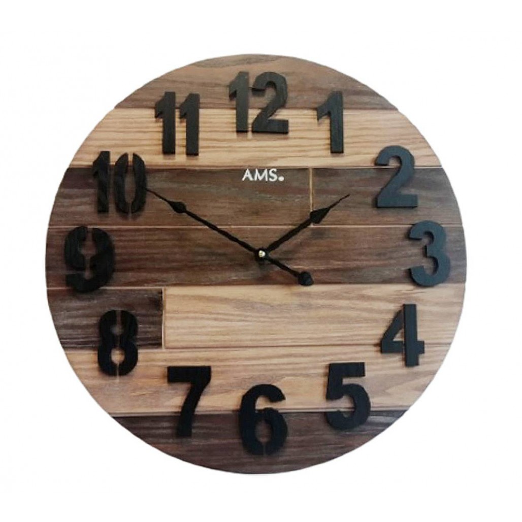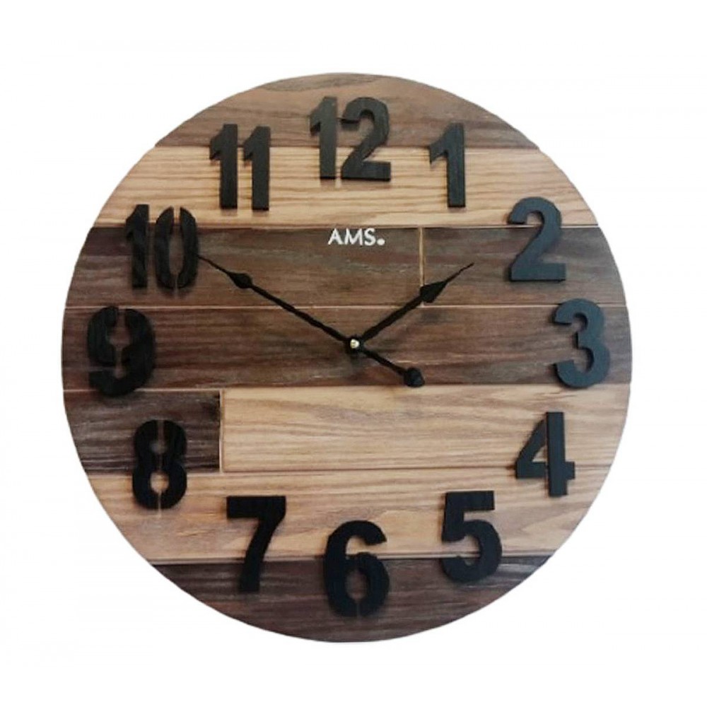 9569 on AMS:n suuri massiivipuusta valmistettu seinäkello. Kellon retrohenkisessä kellotaulussa on mustat numerot, jotka sopivat hienosti tunnusomaisten osoittimien kanssa.