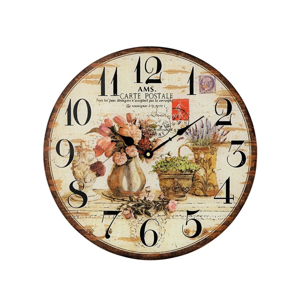 9466 on viehättävä retrotyylinen seinäkello / Shabby chic kukkakuvioilla AMS:lta.